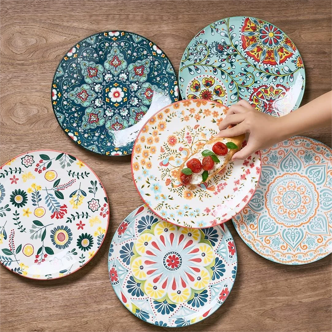 Bohemian Porcelain Dinnerware Set Plates Assorted Patterns Serving Plates Ceramic Dessert Dishes
