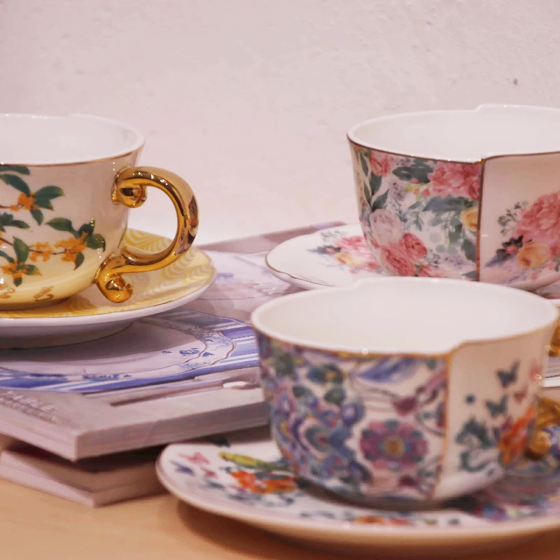 New Chinese Fairy Style Irregular Coffee Cup Saucer Ceramic Coffee Cup Afternoon Tea Combination Set
