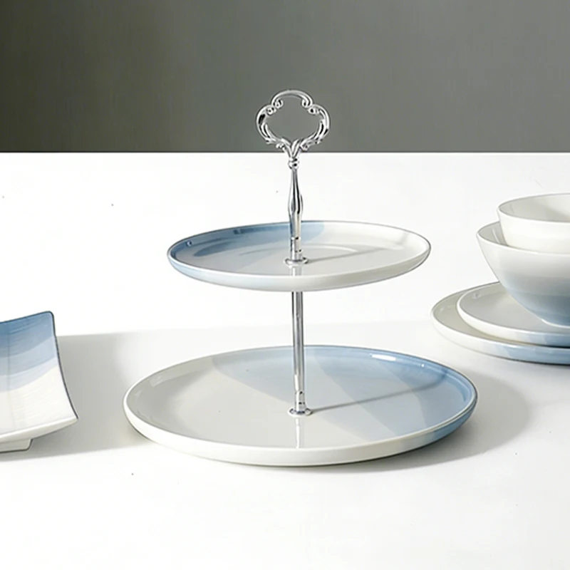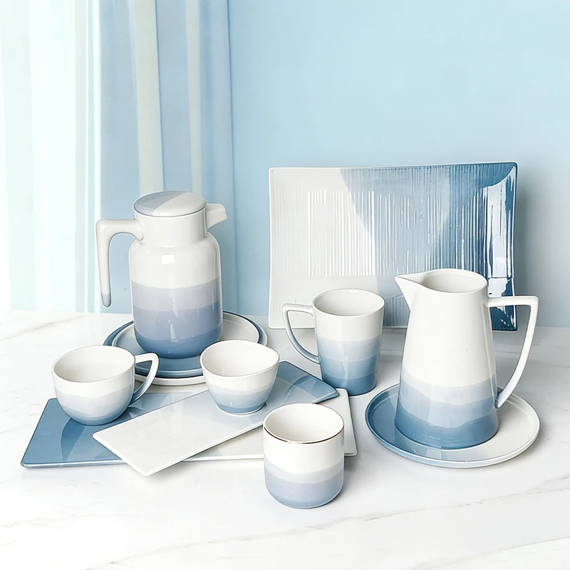 product gradient blue porcelain dinner set stylish ombre ceramic tableware with smooth finish for wedding  gift-0
