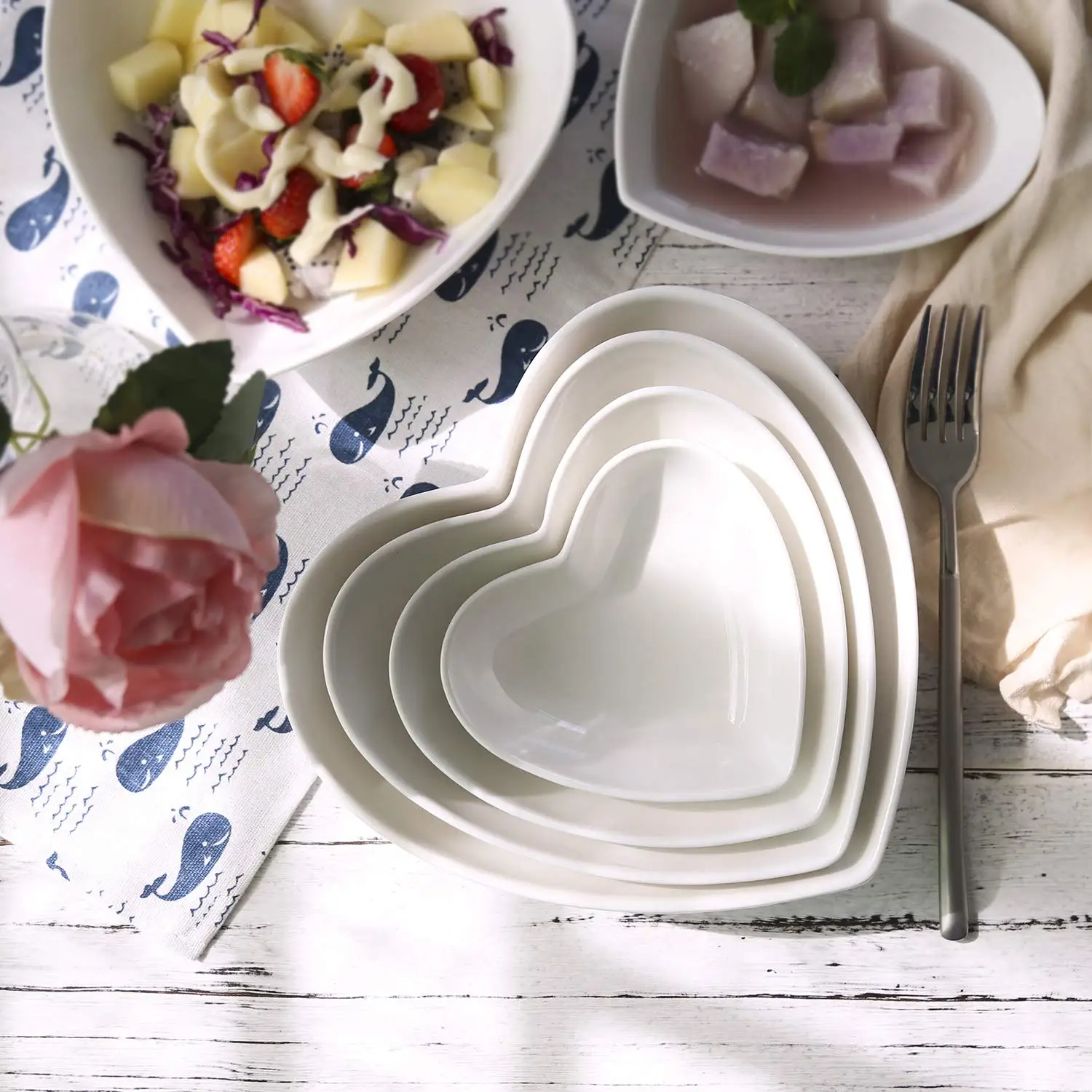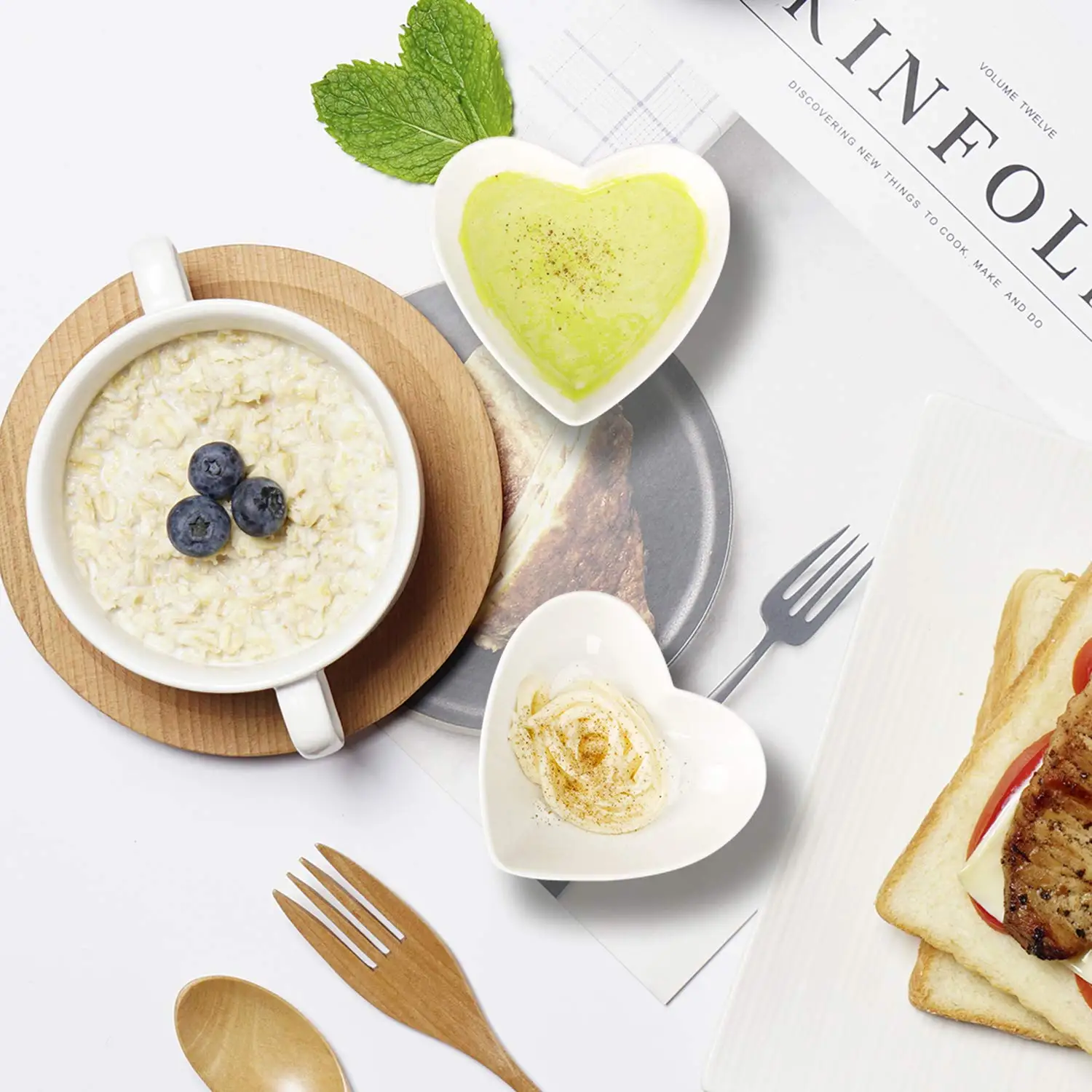 Hot Sale Ceramic Soup and Cereal Bowls Set Heart-Shaped Porcelain Soy Sauce Mini Side Seasoning Jam Dessert Party Dish