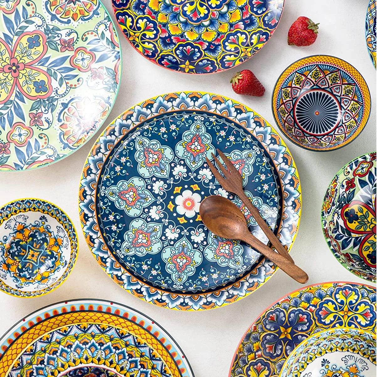 Set of 6 Bohemian Ceramic Stoneware Dinner Plates Colorful Charger Porcelain Tableware for Food & Home Use manufacture