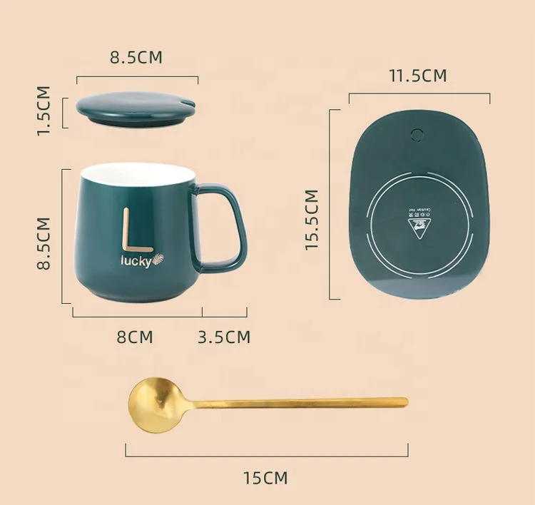 product smart electric ceramic mugs coffee coaster warmer with 55 degree cup lid spoon thermostat intelligent heat porcelain cup-0