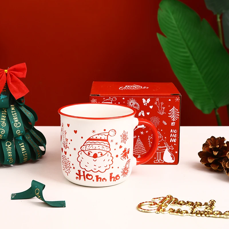 Wholesale Luxury Ceramic Christmas Coffee Mug Set Custom Creative Light Luxury Dishwasher Safe Perfect Christmas Gift Cup factory